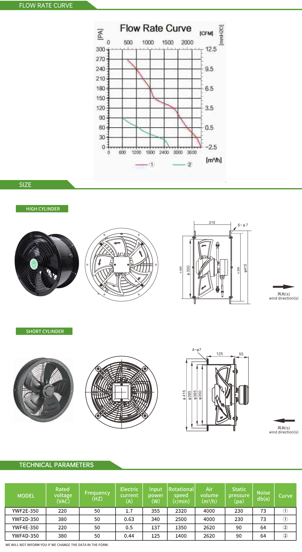 Materials of fan blade and shell:Q235