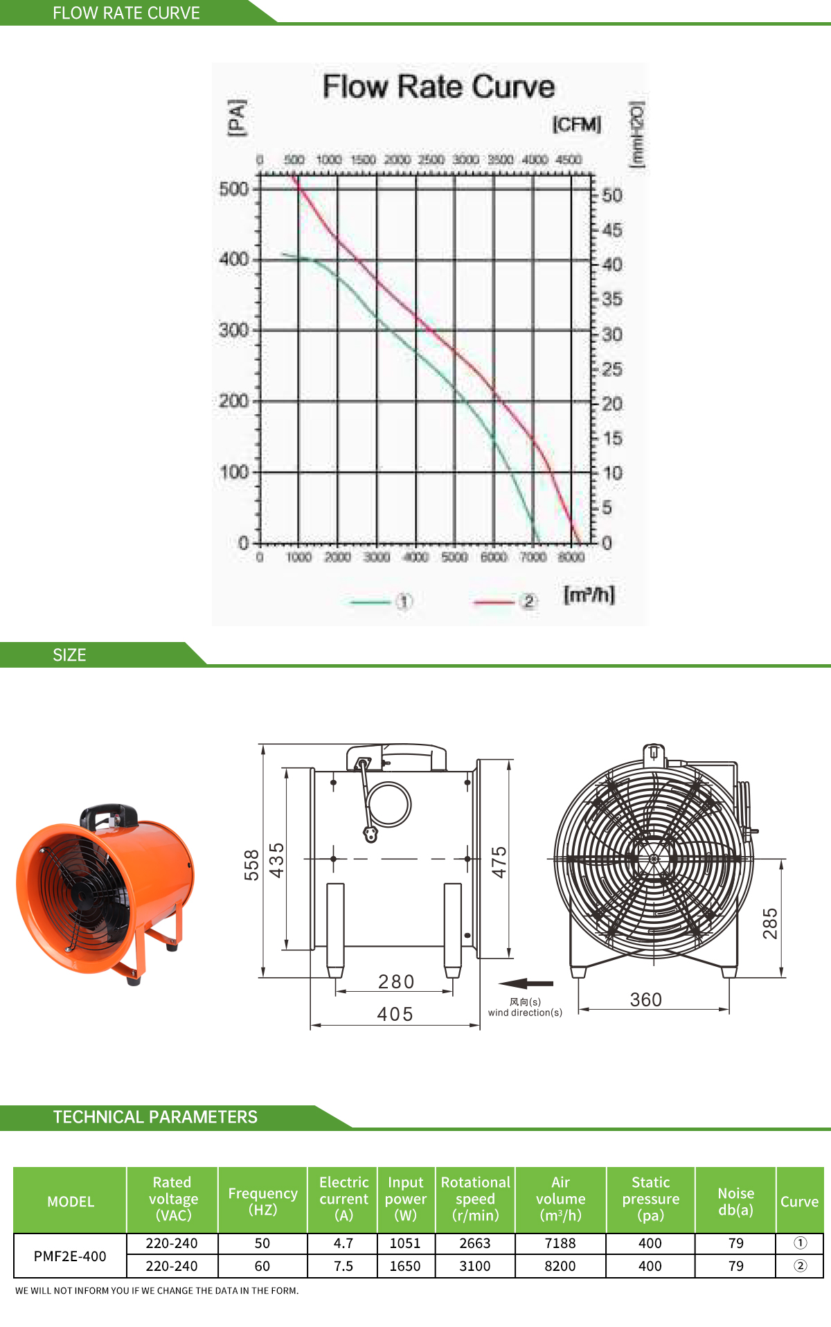 Fan steering: counterclockwise (from the outlet end) Bearing: maintenance-free ball bearing protection level: IP54 ambient temperature: -30~60°C
