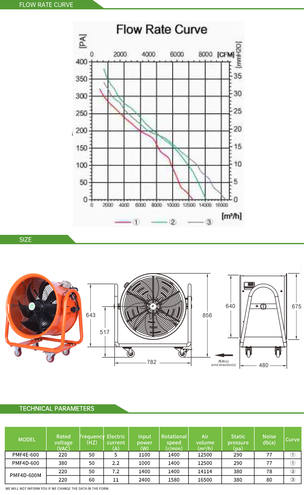 Fan steering: counterclockwise (from the outlet end) Bearing: maintenance-free ball bearing protection level: IP54 ambient temperature: -30~60°C