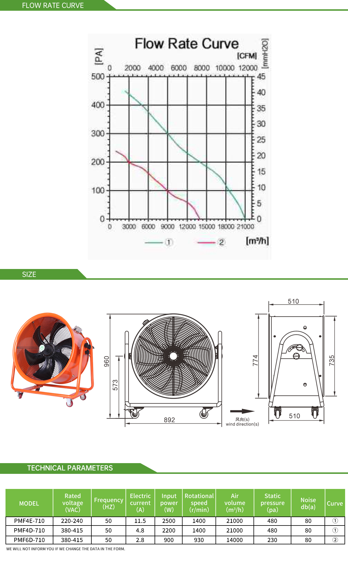 Fan steering: counterclockwise (from the outlet end) Bearing: maintenance-free ball bearing protection level: IP54 ambient temperature: -30~60°C