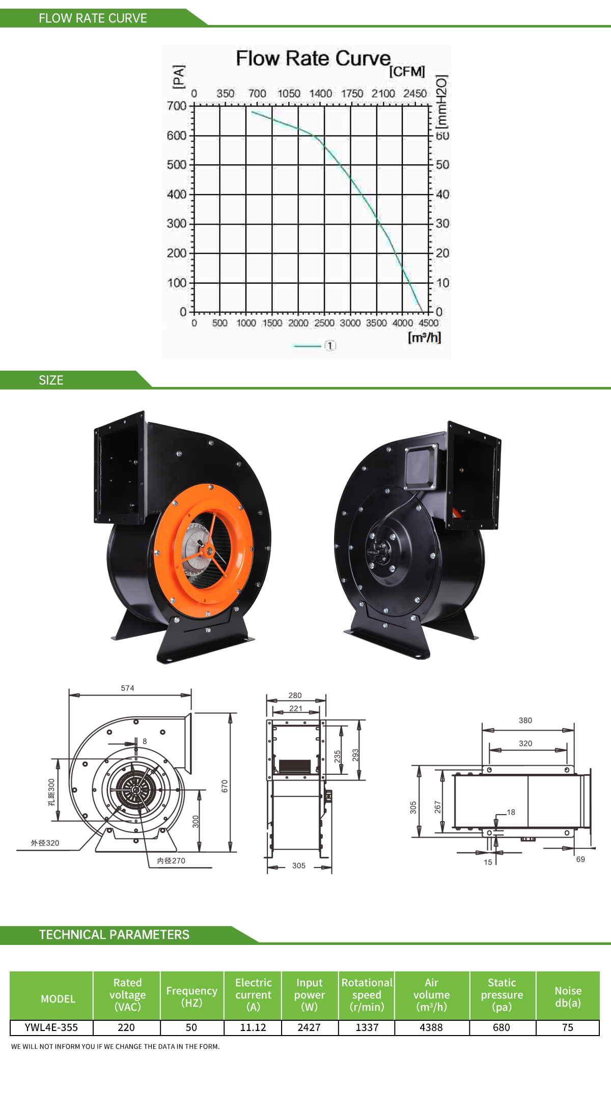 YWL/CF series outer rotor single inlet centrifugal fan is a high-efficiency ventilation equipment developed by our company integrating advanced technology at home and abroad, with small size, large air volume, high efficiency, low vibration, low noise, convenient installation and commissioning as the core advantages, widely used in fresh air system, kitchen smoke exhaust, purification workshop and other ventilation and heat dissipation scenarios.