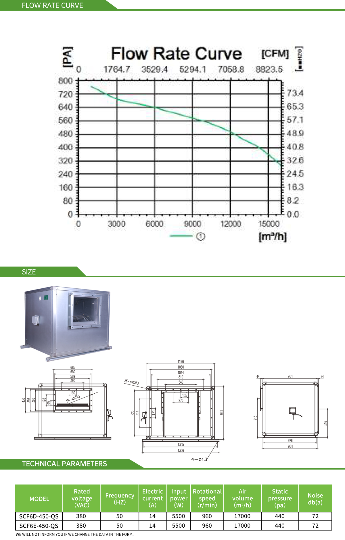 - Optimized air duct design for high operating efficiency and significant energy savings.